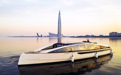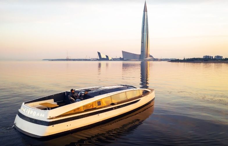 Катер-яхта Амстердам ходит по каналам под низкими мостами в центре Петербурга (обычные яхты не могут пройти в узких каналах под низкими мостами и ходят только по Неве и Финскому заливу).